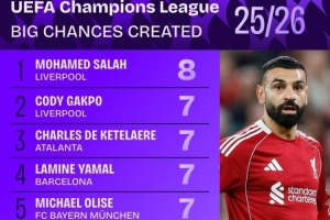 本賽季歐冠創造重大機會榜:薩拉赫領銜紅軍3將 亞馬爾奧利塞在列