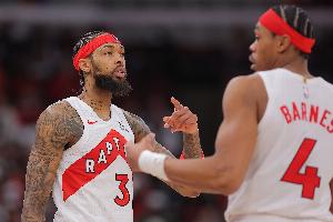上半場比賽,猛龍前鋒英格拉姆和斯科蒂·巴恩斯都發(fā)揮不錯,進攻端內(nèi)外線都狀態(tài)在線,其中英格拉姆9中6,三分2中1,罰球2中2拿到15分2籃板2助攻1搶斷;巴恩斯9中5,三分1中1,罰球3中3拿到14分4籃板1蓋帽。