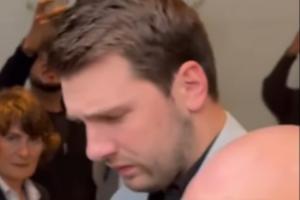 好兆頭?東契奇在西班牙為球迷簽名 走路步態看起來正常