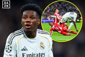 體育資訊04月08日訊 歐冠1/4決賽首回合,皇馬主場1-2不敵拜仁,瓊阿梅尼第36分鐘絆倒奧利塞、撞翻基米希,吃到黃牌次回合停賽。