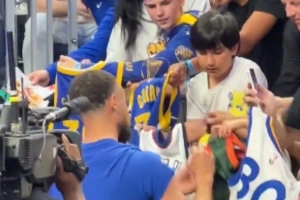 都不白來!庫里賽前給球迷們簽名 一群小學生翹首以盼