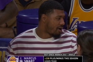 湖人VS雷霆,轉(zhuǎn)播方曬斯瑪特?cái)?shù)據(jù):本賽季他的總凈勝分是+238,領(lǐng)跑全隊(duì)。