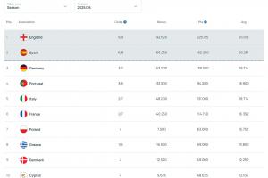 體育資訊04月08日訊 歐足聯更新了本賽季各聯賽歐戰積分排名,意甲聯賽歐戰積分為18.714分,已經被葡超反超,跌出歐洲前四聯賽。