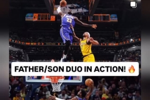賽后詹姆斯更新了個人社媒,曬出自己和布朗尼同場扣籃帥照。配文寫道:“上陣父子兵!??”