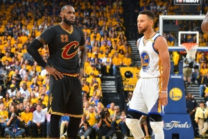 2015-16賽季,庫里場均可貢獻(xiàn)30.1分5.4板6.7助2.1斷,勇士獲得了73勝9負(fù)的歷史最佳戰(zhàn)績;詹姆斯該賽季場均可貢獻(xiàn)25.3分7.4板6.8助1.4斷,最后為騎士拿到了總冠軍。