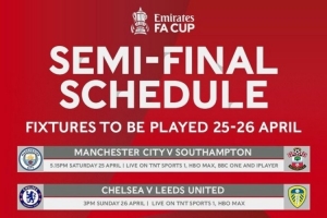 足總杯半決賽時(shí)間:4月26日0點(diǎn)15分曼城vs圣徒 22點(diǎn)切爾西vs利茲
