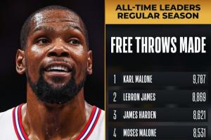 小帥再迎里程碑~杜蘭特罰球命中數(shù)超大O升歷史第6 前面一位是科比