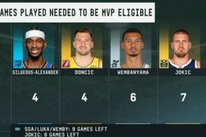 MVP候選人評獎資格:SGA&盧卡需打4場 文班6場 約基奇剩8場打7場
