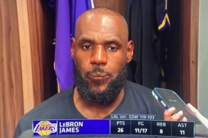 體育資訊4月10日訊 NBA常規(guī)賽,湖人客場119比103擊敗勇士。賽后詹姆斯接受了采訪。