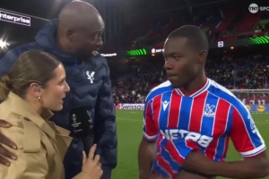 體育資訊4月10日訊 歐協(xié)聯(lián)1/4決賽首回合,水晶宮以3-0的比分完勝佛羅倫薩。本場比賽,28歲前鋒馬特塔為球隊首開紀錄,這是他自轉(zhuǎn)會米蘭失敗后首次取得進球。賽后,馬特塔在接受TNT體育記者奧利維亞·布扎格洛(Olivia Buzaglo)采訪時,一直將手臂搭在她的肩膀上,引起了球迷們的熱議。在采訪現(xiàn)場,布扎格洛開玩笑道:“我們都在這里有個小小的擁抱。”