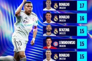 體育資訊04月10日訊 本賽季皇馬前鋒姆巴佩在10場歐冠中已經打進14球,歐冠官方曬出了歐冠歷史單賽季進球排行榜,姆巴佩暫時排在第6。同時歐冠官方發出提問:姆巴佩能升到多高的位置?