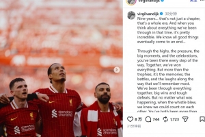 體育資訊4月10日訊 薩拉赫和羅伯遜已經(jīng)先后官宣將于賽季結(jié)束后離隊(duì),隊(duì)長(zhǎng)范戴克也通過社媒發(fā)文向兩人告別: