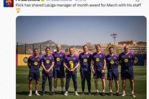 巴塞羅那在3月3場西甲保持全勝,主教練弗里克獲得了西甲聯賽頒發的三月最佳教練獎。弗里克一向重視教練團隊的工作,他因此要求與自己最信任的團隊成員一起領取這份榮譽。
