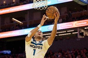 體育資訊4月11日訊 NBA常規賽,森林狼半場69-73落后于火箭。