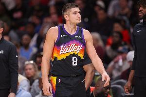 本場比賽,太陽球員阿倫表現(xiàn)不多,由于左腿筋傷勢提前退賽,只打了12分半,投籃7中2,三分球5中1,罰球3中3,拿到8分4籃板1助攻1搶斷。