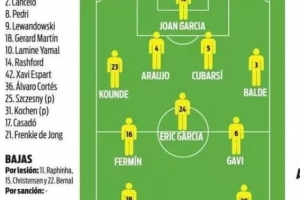 每體預測巴薩首發:巴德吉、加維出戰,佩德里、亞馬爾替補