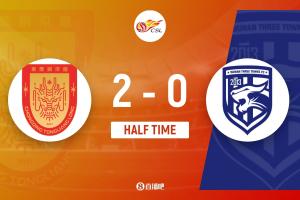 傷停補時3分鐘,上半場結束,重慶銅梁龍2-0武漢三鎮。