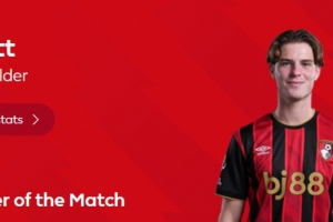 本場(chǎng)比賽伯恩茅斯中場(chǎng)斯科特表現(xiàn)活躍,打進(jìn)球隊(duì)第二粒進(jìn)球,賽后他也當(dāng)選英超官方評(píng)選出的本場(chǎng)比賽最佳球員。