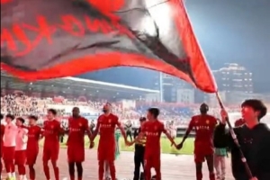 體育資訊4月11日訊 中超第5輪,重慶銅梁龍主場(chǎng)2-1擊敗武漢三鎮(zhèn),取得中超兩連勝。賽后,本場(chǎng)比賽停賽的李鎮(zhèn)全和沒(méi)有上場(chǎng)的隊(duì)長(zhǎng)向余望現(xiàn)身球場(chǎng),和隊(duì)友一起與球迷互動(dòng),慶祝這場(chǎng)來(lái)之不易的勝利。
