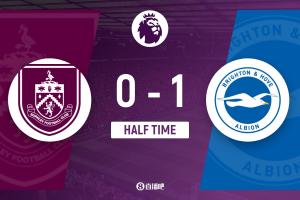 半場結束,伯恩利暫0-1布萊頓。