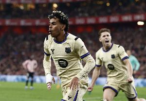 數據統計顯示,本賽季西甲聯賽亞馬爾進球和助攻數均已上雙,是五大聯賽第三位做到這一點的球員。