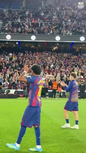 體育資訊04月12日訊 加泰德比,巴薩4-1戰勝西班牙人。巴薩球員賽后謝場,全場球迷6萬多球迷高喊“是的,我們可以”,鼓勵球隊逆轉馬競。
