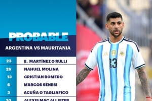 體育資訊3月27日訊 北京時間明天7點15分,阿根廷將在友誼賽中對陣毛里塔尼亞,TYC預測了阿根廷隊的首發陣容。