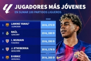 西甲出戰100場最年輕球員榜:亞馬爾居首,勞爾、穆尼亞因前三