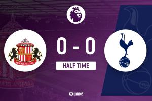 半場(chǎng)結(jié)束,桑德蘭0-0熱刺。