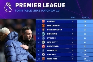 德轉(zhuǎn)統(tǒng)計(jì)了同期(自第19輪以來(lái))英超各隊(duì)的積分情況,熱刺是唯一沒(méi)有取勝過(guò)的球隊(duì),而且球隊(duì)同期積分排在英超20支球隊(duì)的最后一位。