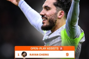 謝爾基本賽季英超運動戰(zhàn)送出9助攻位居榜首,哈蘭德、B費均7次