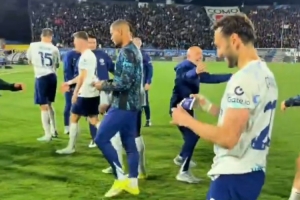 恰爾汗奧盧賽后與勞塔羅擁抱慶祝,并給后者戴上隊長袖標