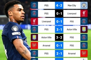 巴黎2025年來12次對陣英超球隊,戰績9勝1平2負