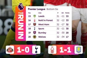 著名數據機構Opta的超級計算機演算結果顯示,熱刺目前的降級概率達到了46.5%,比西漢姆聯(36.03%)高出了10個百分點。森林和利茲聯的降級概率則不到10%。