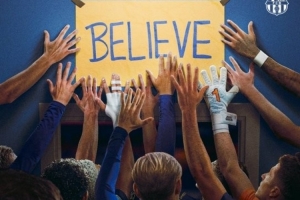 巴薩曬海報:致敬美劇《足球教練》,球員將手覆在“相信”標(biāo)語上