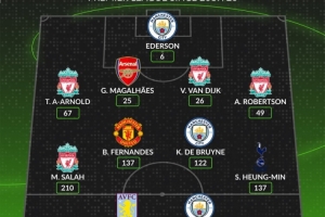 后衛:阿諾德(利物浦,67球)、加布里埃爾(阿森納,25球)、范戴克(利物浦,26球)、羅伯遜(利物浦,49球)