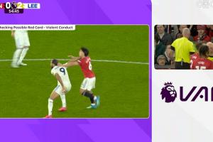 體育資訊04月14日訊 英超第32輪,曼聯對陣利茲聯。55分鐘, VAR介入,主裁親自觀看回放,判罰利桑德羅拉拽勒溫頭發,將其紅牌罰下。