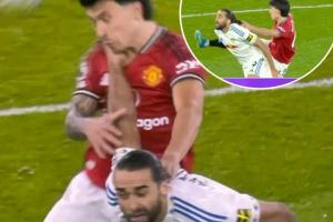 體育資訊04月14日訊 英超第32輪,曼聯(lián)對(duì)陣?yán)澛?lián)。55分鐘, VAR介入,主裁親自觀看回放,判罰利桑德羅拉拽勒溫頭發(fā),將其紅牌罰下。