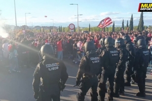 本場比賽前部分馬競球迷堵在前往球場的道路中央,警察出動介入維持秩序。