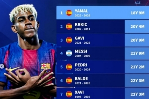 體育資訊4月15日訊 在歐冠1/4決賽次回合,巴薩2-1擊敗馬競,亞馬爾達成巴薩生涯150次出場里程碑。德轉盤點了巴薩隊史達成150次出場最年輕紀錄榜,具體如下: