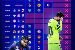 巴薩近10個賽季歐冠戰(zhàn)績:2次進入半決賽最佳,第5次止步8強