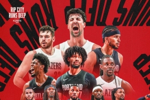 撕裂之城!開(kāi)拓者官推賽后曬全員海報(bào) 慶祝晉級(jí)季后賽