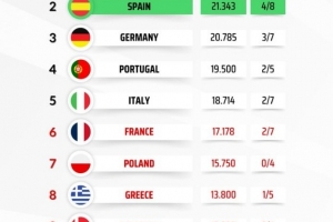 體育資訊4月16日訊 本賽季歐冠8強戰全部結束,隨著拜仁淘汰皇馬晉級,德甲聯賽歐戰積分與西甲聯賽差距縮小。