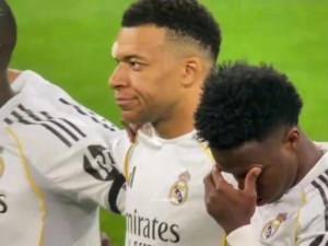 體育資訊04月16日訊 歐冠1/4決賽拜仁vs皇馬賽前,兩隊為致敬離世的皇馬舊將、1982年世界杯西班牙國家隊主帥何塞?埃米利奧?桑塔馬里亞舉行默哀儀式?,F場有部分德國球迷響起陣陣喧嘩,姆巴佩搖頭表示不滿。