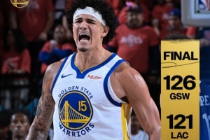 體育資訊4月16日訊 附加賽勇士客場126-121逆轉(zhuǎn)快船,將和太陽爭奪西部第八。