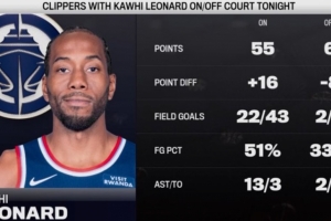 據統計,上半場比賽中,小卡在場時快船正負值+16,期間球隊投籃命中率51%;下場后為-8,期間球隊投籃命中率33%。