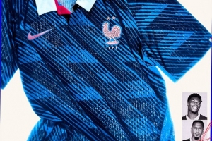 法國隊官方社媒曬出球衣照片,正式推出法國隊世界杯主客場球衣,姆巴佩、卡馬文加擔當模特。