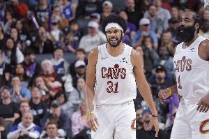 本場比賽阿倫時隔10場迎來復出,騎士本場首發為:哈登、米切爾、梅里爾、莫布里、阿倫。