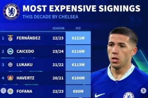體育資訊4月19日訊 《轉(zhuǎn)會市場》統(tǒng)計了切爾西自2020年以來的最貴引援情況,4人轉(zhuǎn)會費上億歐元。