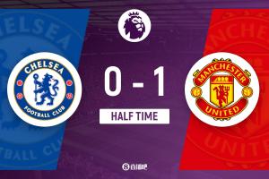 上半場傷停補時5分鐘,半場結束,切爾西暫0-1曼聯。